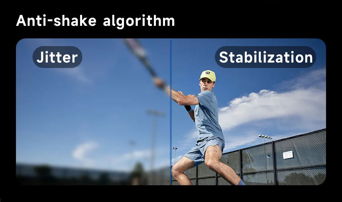 【EIS anti-shake】Quick shutter response to capture photos in 0.5 second, and fitst-person perspective provides a stable picture with minimal cropping.